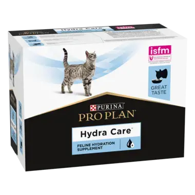 Додавання PURINA® PRO PLAN® Hydra Care до основного раціону Вашого кота дозволяє значно збільшити добове споживання води котом, таким чином покращуючи гідратацію його організму і сприяючи розведенню сечі.